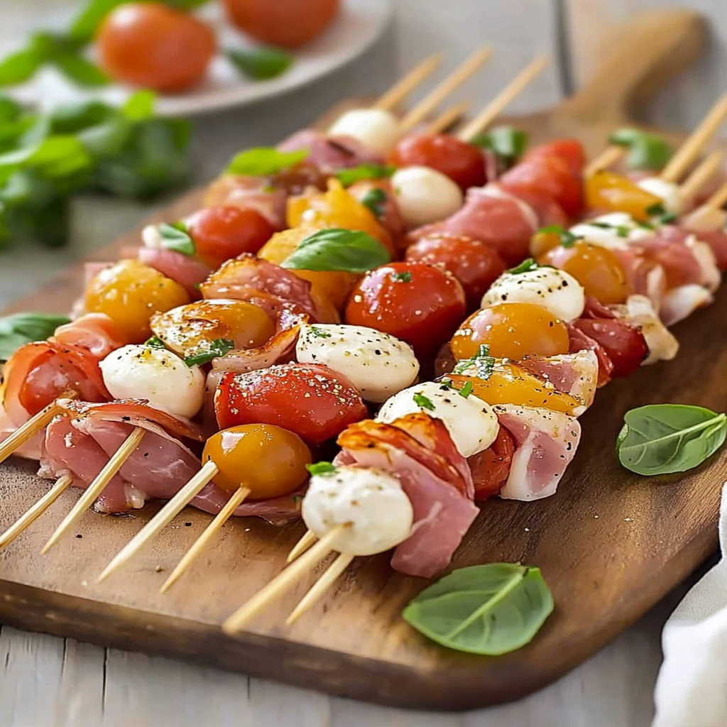 Feel free to swap out ingredients based on what you love! Try adding olives for a briny kick or roasted bell peppers for sweetness. Experiment with different cheeses or herbs to personalize your skewers even more.
