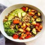 Now you’ve got yourself a delightful quinoa and roasted veggie bowl that’s not only food but fuel—a nutritious powerhouse ready to keep you energized throughout your day! Enjoy every bite as you relish in the satisfaction of creating something deliciously fulfilling!