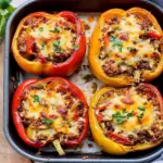 Transfer to plates and sprinkle shredded cheese over each stuffed pepper before serving—they’ll melt perfectly as you feast under the stars!