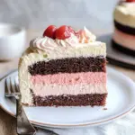 Vegan Neapolitan Cake with Coconut Cream is a stunning dessert that combines three delectable layers of chocolate, vanilla, and strawberry cake, all generously topped with fluffy whipped coconut cream. This vibrant treat is not only visually appealing but also packed with rich flavors that will delight both vegan and non-vegan guests alike. Perfect for celebrations or as a sweet indulgence at home, this cake is sure to impress!