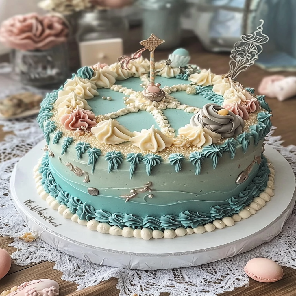 Dive into a whimsical celebration with this Mystical Ocean Vintage Birthday Cake! Each layer of fluffy vanilla cake is enveloped in rich buttercream, evoking delightful childhood memories and oceanic adventures. Perfect for birthday parties or any joyous occasion, this enchanting dessert features vibrant colors and customizable decorations that will impress your guests and enchant your taste buds.