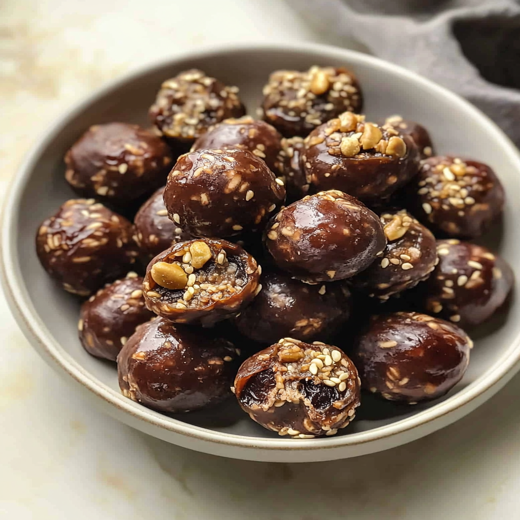 Energy bites with dates and nuts are your go-to snack for a quick energy boost! These no-bake delights combine the natural sweetness of Medjool dates with crunchy mixed nuts, creamy peanut butter, and nutritious chia seeds. Easy to make in just minutes, they deliver a deliciously satisfying way to fuel your day without sacrificing flavor. Perfect for any time you need a healthy pick-me-up, these energy bites will keep you energized and ready to tackle anything!