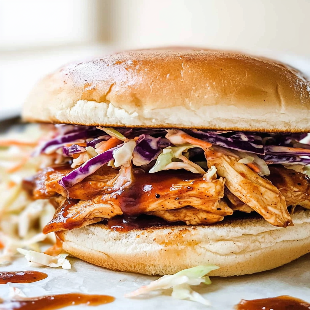 Indulge in the ultimate comfort food with this BBQ chicken sandwich topped with refreshing coleslaw. Juicy, tender chicken is marinated in your favorite smoky BBQ sauce and piled high on a soft bun, complemented by a crunchy, tangy slaw. This dish is perfect for summer cookouts, family dinners, or any occasion where flavor takes center stage!