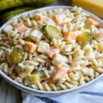 There are many delicious variations you can try for dill pickle pasta salad with cheddar cubes. For a protein boost, add diced cooked chicken or chickpeas. You could also include crispy bacon bits for added flavor and crunch. Experimenting with different cheeses like feta or pepper jack can change the flavor profile entirely. If you’re looking for a bit of spice, adding sliced jalapeños or red pepper flakes will give it an extra kick that balances well with the creamy dressing.