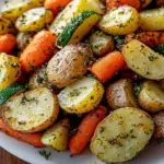 Garlic Herb Roasted Potatoes, Carrots, and Zucchini is a vibrant and flavorful side dish that showcases the natural sweetness of fresh vegetables. Tossed in a delightful blend of garlic and herbs, these roasted veggies become golden and crispy, making them a perfect accompaniment for family dinners or special gatherings. With minimal prep time and an easy cooking process, you can create a dish that’s not only visually appealing but also bursting with flavor.