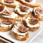 Goat cheese and fig bruschetta appetizer is a delightful combination of creamy goat cheese, sweet figs, and crispy bread. This dish features toasted baguette slices topped with a mixture of soft goat cheese and fresh or dried figs. rosemary garlic potatoes The flavors blend beautifully, making it a perfect starter for gatherings or a sophisticated snack.