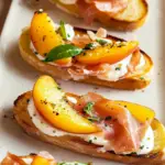 Peach and prosciutto bruschetta appetizer brings together the sweetness of ripe peaches and the savory goodness of prosciutto on a crunchy toast, creating a flavor explosion that will leave your taste buds dancing. a comforting starter option The vibrant colors and delightful textures make this dish a showstopper for any occasion, from casual summer gatherings to elegant dinner parties.