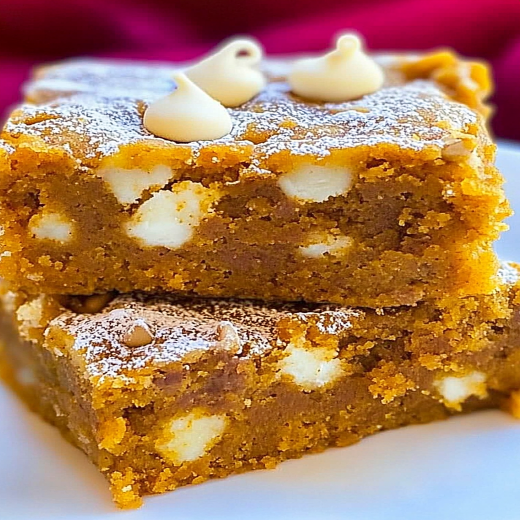 Pumpkin Spice Cake Bars with White Chocolate Chips are the ultimate fall treat, combining the rich flavors of pumpkin and warm spices with creamy white chocolate. These moist, tender cake bars are perfect for gatherings or simply indulging yourself. With a delightful aroma that fills your kitchen, they offer a cozy taste of autumn in every bite. Easy to make and visually appealing, these cake bars will impress friends and family alike.