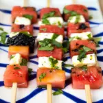 - Assemble Skewers: Alternate threading watermelon and feta onto each skewer, adding mint leaves for extra flavor.