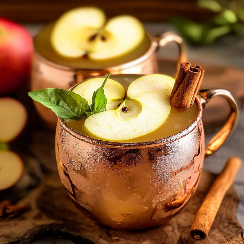 Apple Cider Moscow Mule is a delightful autumn-inspired cocktail that fuses the crispness of fresh apple cider with the spicy kick of ginger beer. Served in a classic copper mug, this refreshing drink is perfect for gatherings or cozy nights at home.