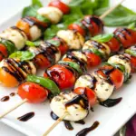 Caprese skewers with balsamic drizzle are the perfect summer appetizer, combining juicy cherry tomatoes, creamy mozzarella, and aromatic basil on a stick. These vibrant bites are enhanced by a rich balsamic glaze, delivering an explosion of flavors in every mouthful. Ideal for picnics, barbecues, or casual dinners, these easy-to-make skewers will impress your guests and elevate any gathering with their fresh taste and stunning presentation.