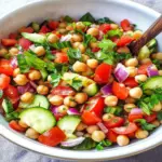 In conclusion, the chickpea and cucumber summer salad is an easy-to-make dish packed with flavor and nutrition. With its refreshing ingredients like cucumbers and tomatoes combined with protein-rich chickpeas, this salad offers both taste and health benefits. delicious side dish Customizable to suit your palate, it serves as a perfect side or main dish throughout the warm months. Enjoy this delightful meal at your next gathering!