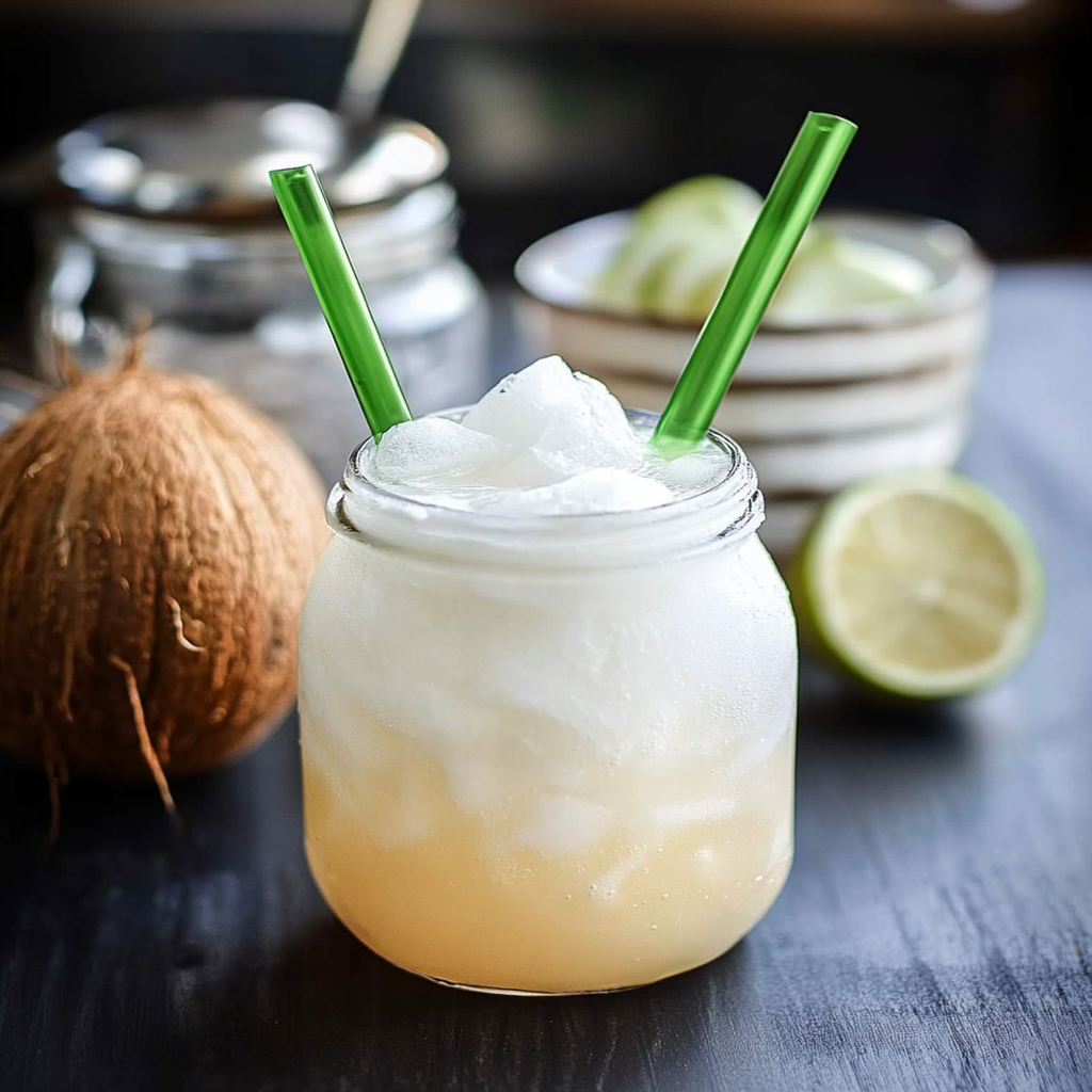 - In a blender, combine coconut water, lime juice, and agave syrup or honey. Blend until smooth.