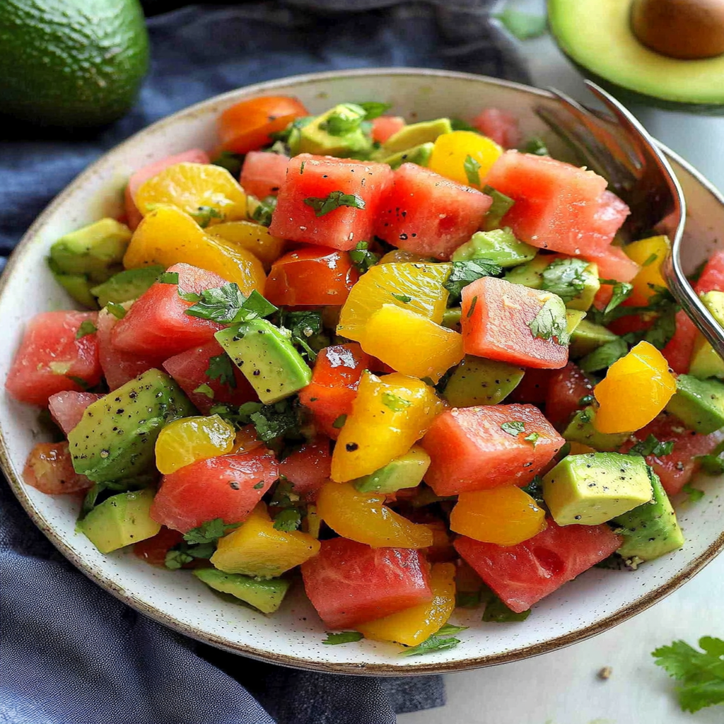 Yes, you can prepare Watermelon Avocado Salad with Citrus Dressing slightly ahead of time; however, it’s best to wait until just before serving to combine the ingredients fully. To maintain freshness, chop the watermelon and avocado separately and store them in airtight containers in the fridge. Prepare the citrus dressing in advance as well. When ready to serve, mix everything together to avoid browning of the avocados and sogginess in the salad.