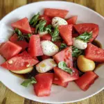 In summary, Watermelon Caprese Salad with Balsamic Drizzle is a delightful dish that combines fresh ingredients for an unforgettable taste experience. With its sweet watermelon, creamy mozzarella, and aromatic basil topped off with a tangy balsamic reduction, this salad is perfect for any occasion. Watermelon salad with feta Easy to make yet impressive enough for guests, it’s sure to become a favorite in your recipe collection. Enjoy this refreshing treat as part of your summer meals!