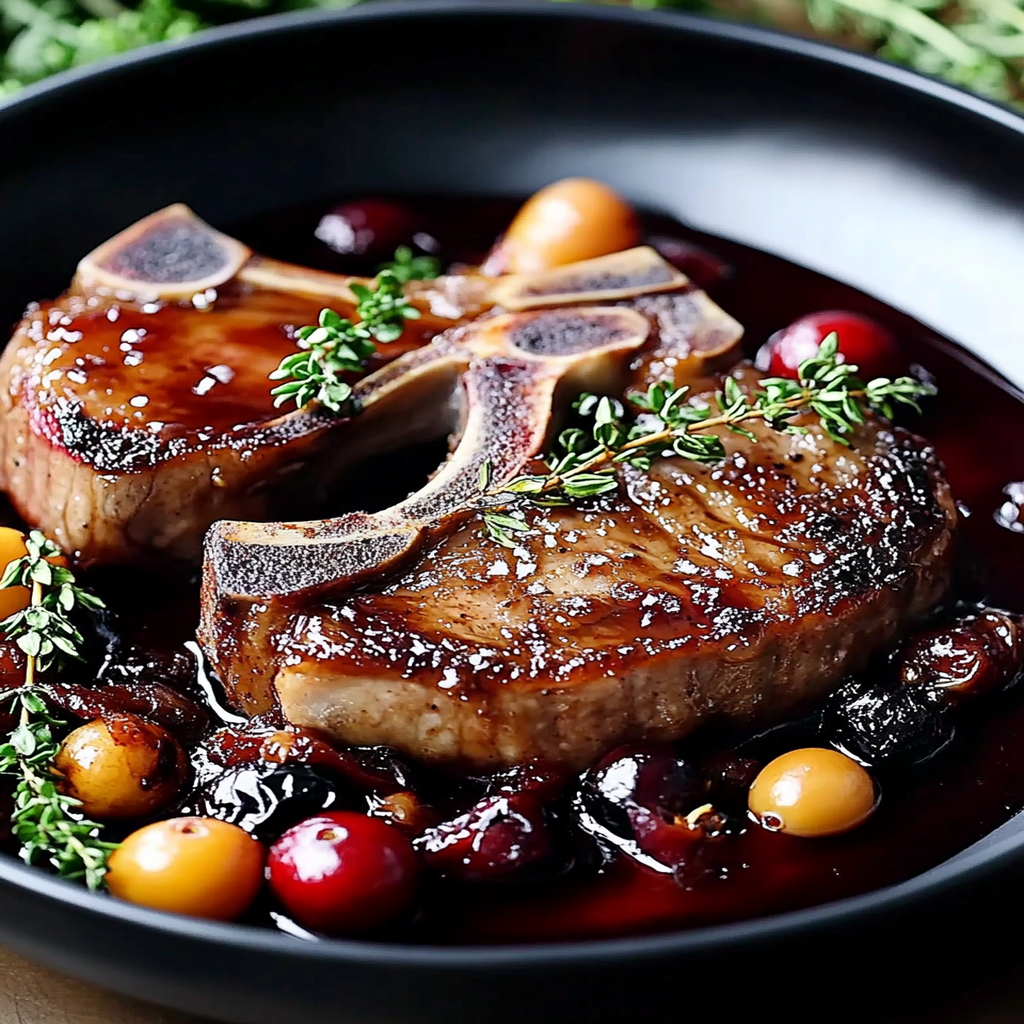 Start by searing the beef chops in a hot skillet to lock in those savory juices. While they cook, prepare the cranberry glaze so it’s ready to pour over the meat right after cooking for maximum flavor.