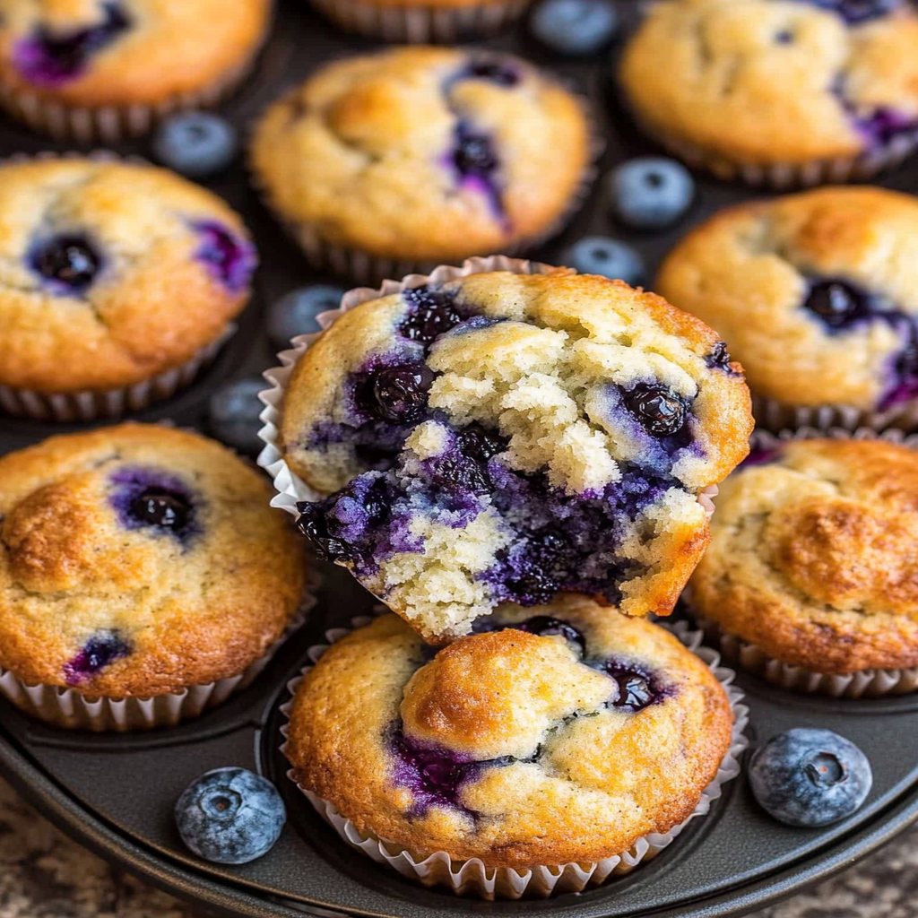 Start by preheating your oven to 375°F (190°C). While that’s warming up, mix the dry ingredients first, then in another bowl, blend the wet ingredients. Finally, fold in those gorgeous blueberries before scooping the batter into muffin tins. Bake until golden brown.