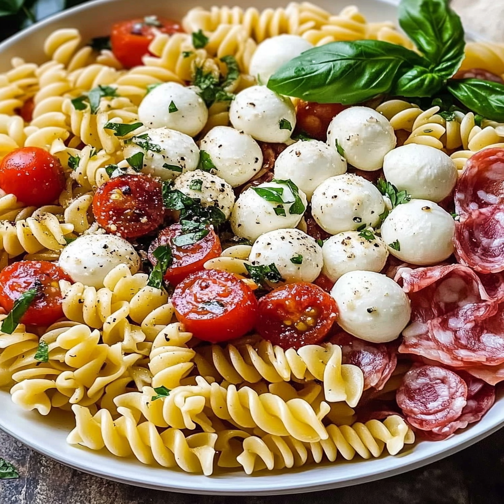 Antipasto pasta salad with mozzarella balls is a delightful dish that combines the flavors of Italian antipasto with pasta. This salad typically includes cooked pasta, fresh mozzarella balls, olives, cherry tomatoes, salami, and various vegetables, all tossed in a zesty dressing. It’s perfect for gatherings or as a refreshing meal on warm days. The combination of textures and flavors makes it a crowd-pleaser!