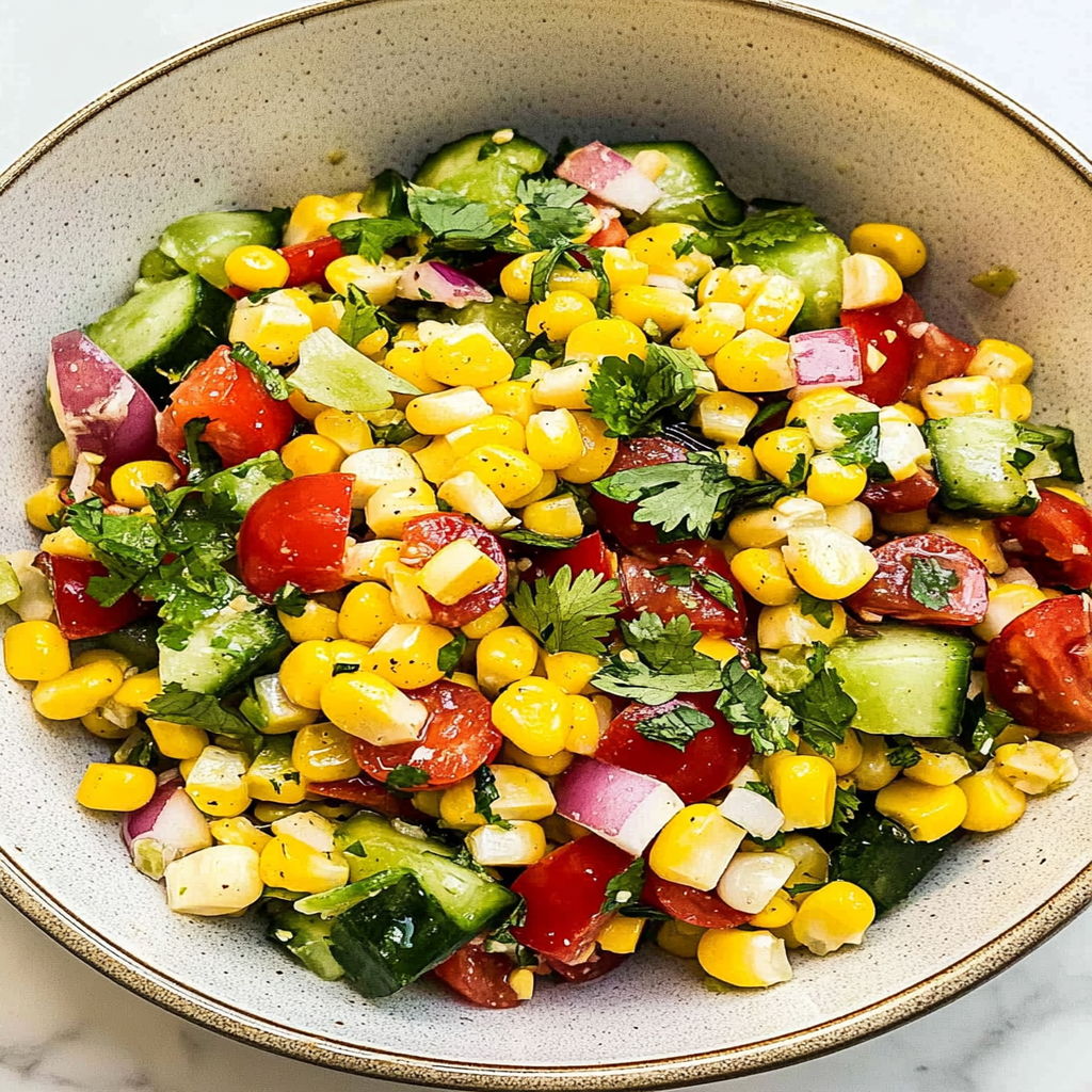 Start by boiling the corn until tender, then cool before cutting the kernels off the cob. While that’s happening, mix your dressing to let those flavors mingle. Toss everything together right before serving for maximum freshness.
